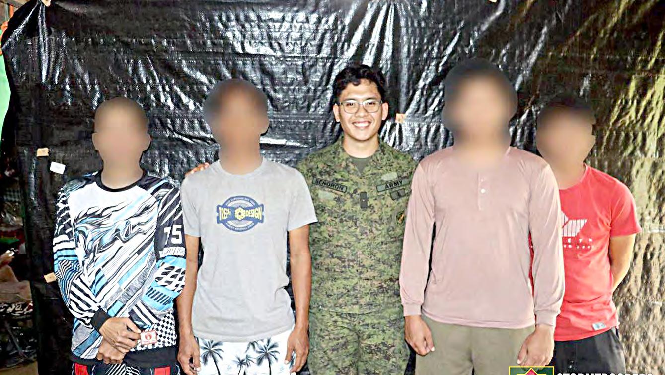 From left: Sam Shoaf as Topee, Noel Comia Jr. as Gilbert, Milo Cruz as Tonton, Ethan David as Arnel, and Andres Muhlach as Adie at the opening night of’ Bagets The Musical’