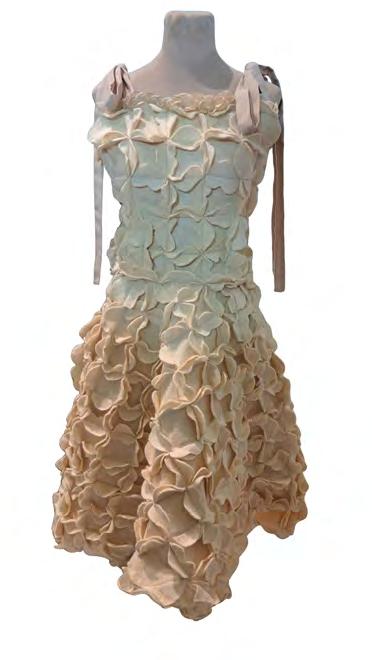 A sculptural dress demonstrates how pineapple leaf fibers can be shaped into tactile fashion pieces