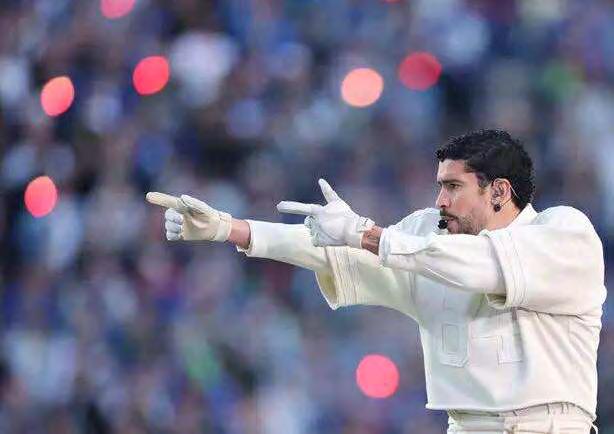 first Super Bowl headliner to perform exclusively in Spanish, turning the stadium into a Puerto Rican street festival with a sugarcane plantation, a piragua cart, a wedding scene, and a backdrop resembling a Puerto Rican home. He opened with hits including
