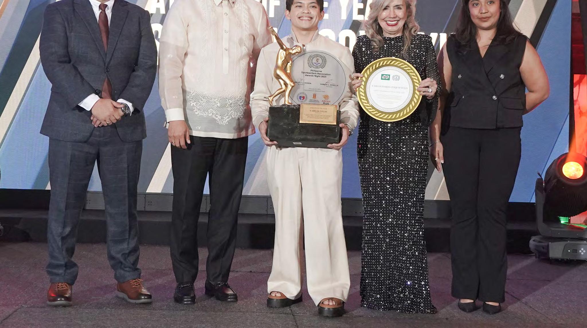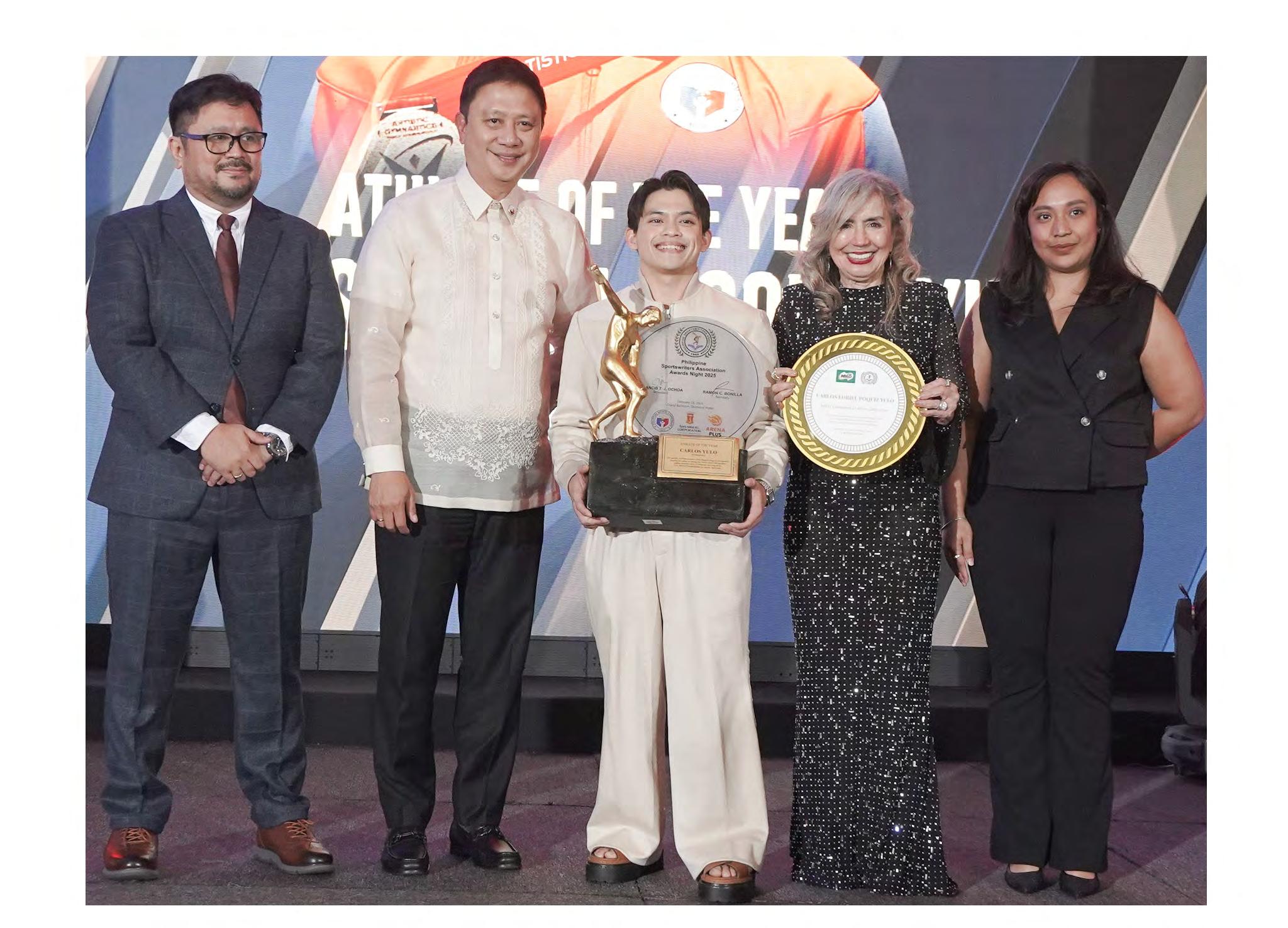 Fernando M. Chico, Jefferson Catimbang, president and chief executive of 88 VIP Ventures Corporation, and coach Erwin Carpena, president and CEO of Motorclyde and owner of JuanMeds Pharmacy, with Marinella Aclan
