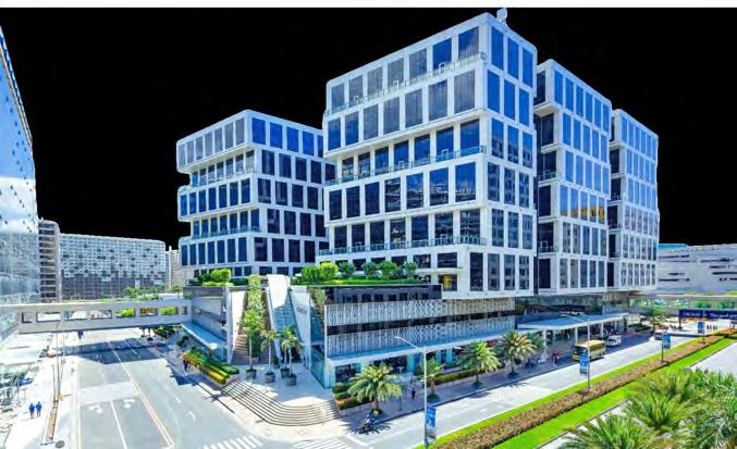 Located at the Mall of Asia Complex in Pasay City, the twin-tower 15-story office development has more than 93,000 square meters of gross leasable area, with floor plates averaging 3,500 square meters designed to accommodate flexible office layouts.