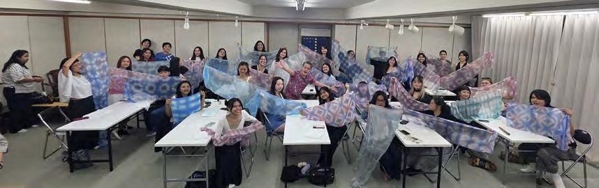A hands-on workshop at the Kyoto Shibori Museum introduced the traditional resist-dyeing method Itajime Shibori. The activity allowed participants to experiment with historical patternmaking techniques and explore contemporary applications in fashion design.
