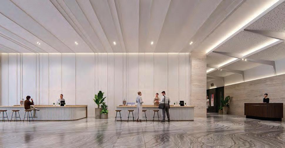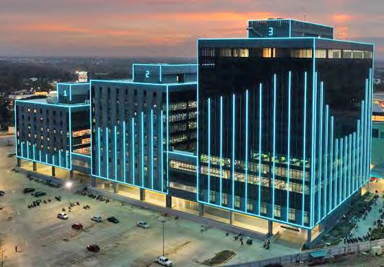 3 adds 12 floors of modern office inventory, complementing the fivestory Tower 1 and eight-story Tower 2. Designed for efficiency and employee well-being Tower 3 was built with sustainability and user experience in mind. Energyefficient building systems and upgraded fixtures help reduce power consumption, while LED lighting is installed throughout the property. An on-site sewage treatment plant supports responsible water management. More than 25 percent of the site has been allocated for habitat restoration, contributing to greener urban spaces and compliance with LEED credits for restoration and protection. Recycledcontent materials were also used during construction to help minimize waste and environmental impact.