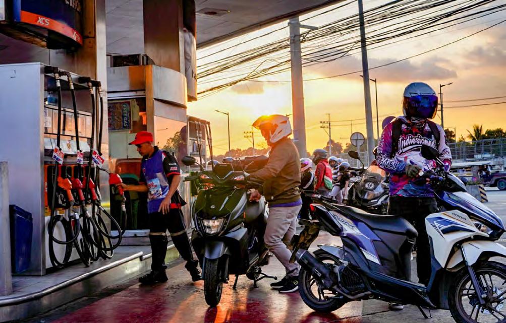 AHEAD OF THE PRICE SURGE. Motorcyclists line up at a gasoline station in Quezon City ahead of