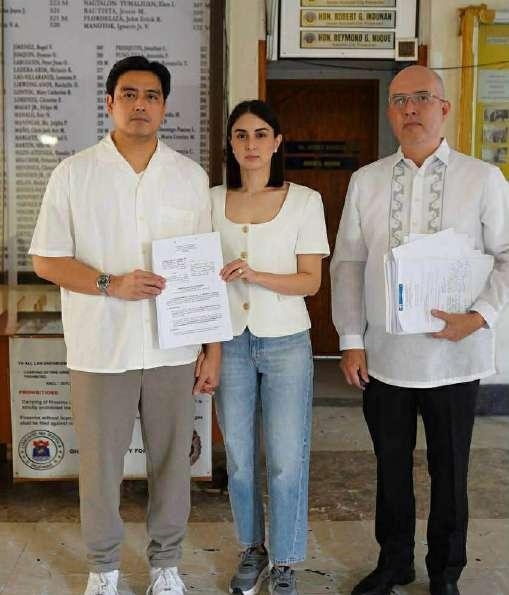 Quezon City Councilor Alfred Vargas (left) and his wife, Yasmine (center) formally take legal action, saying the alleged bullying of their son should not be dismissed as a child’s quarrel