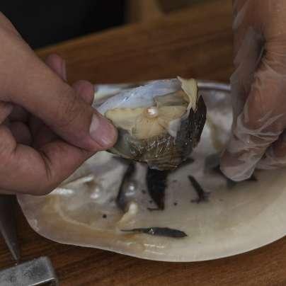 Visitors take part in pearl harvesting, one of several interactive activities at the summer crawl event