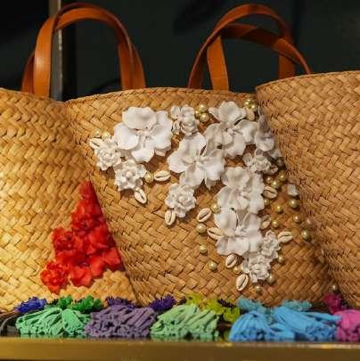 Handcrafted bags showcase the traditional weaving techniques reimagined through contemporary design