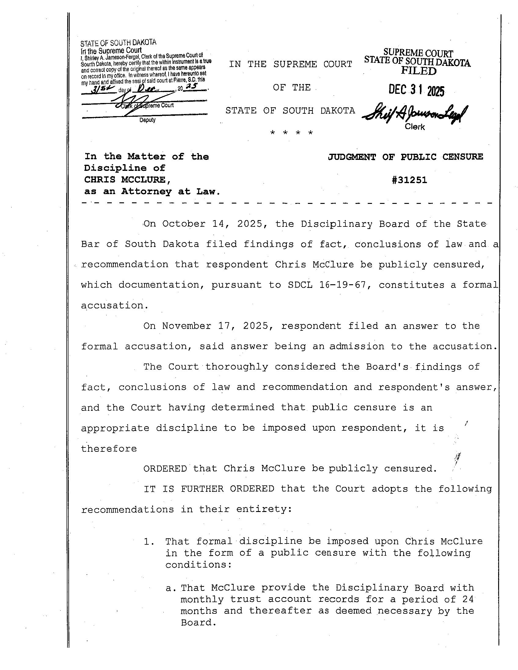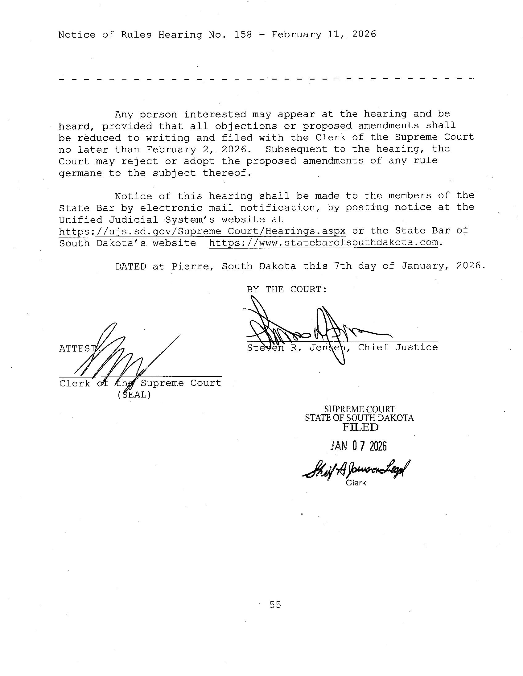 A special thank you to the South Dakota Supreme Court for their time and commitment: