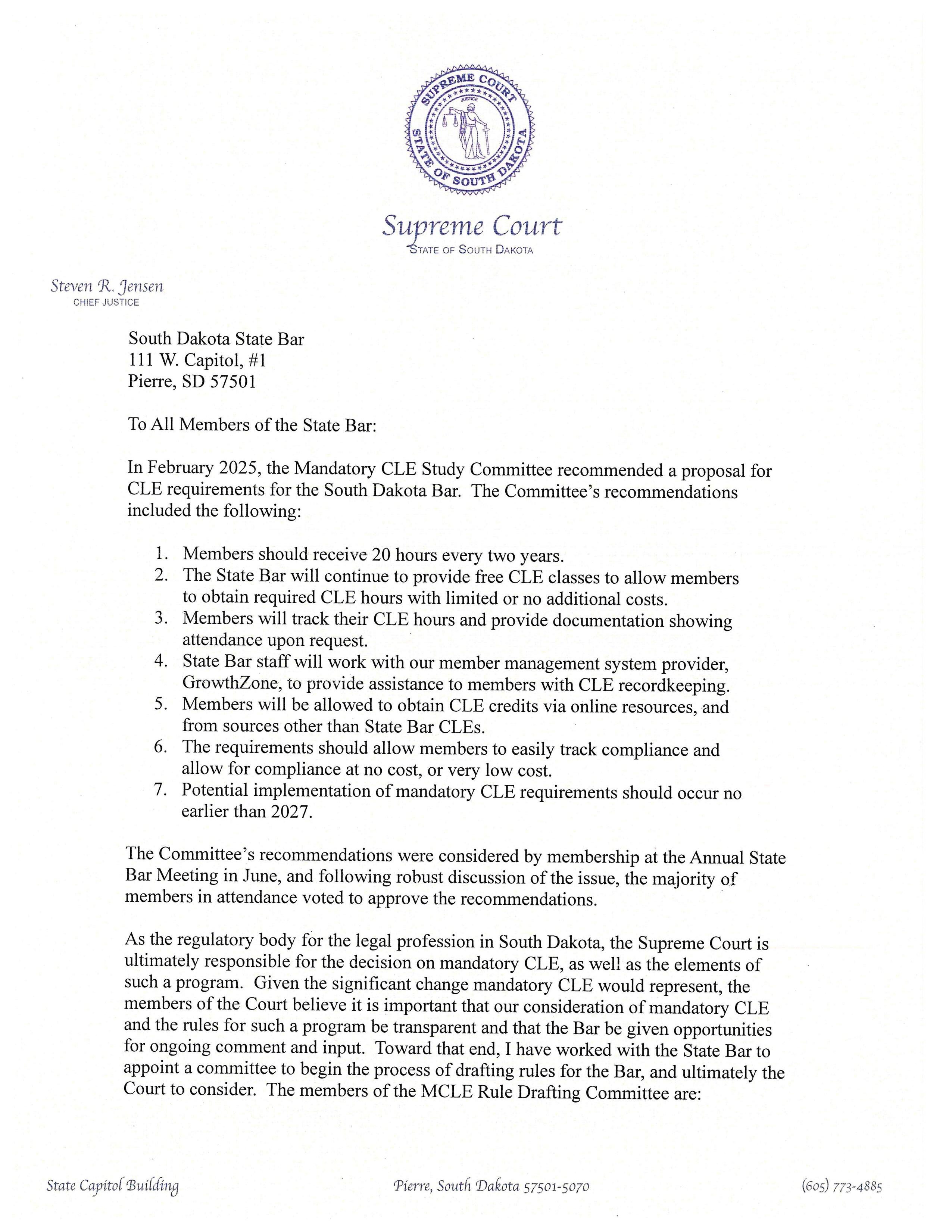 The plan was simple: Commissioners who could make the trip to Pierre could attend the State of the Judiciary Address, share lunch with the Justices, and then observe the State of the Tribes Address.