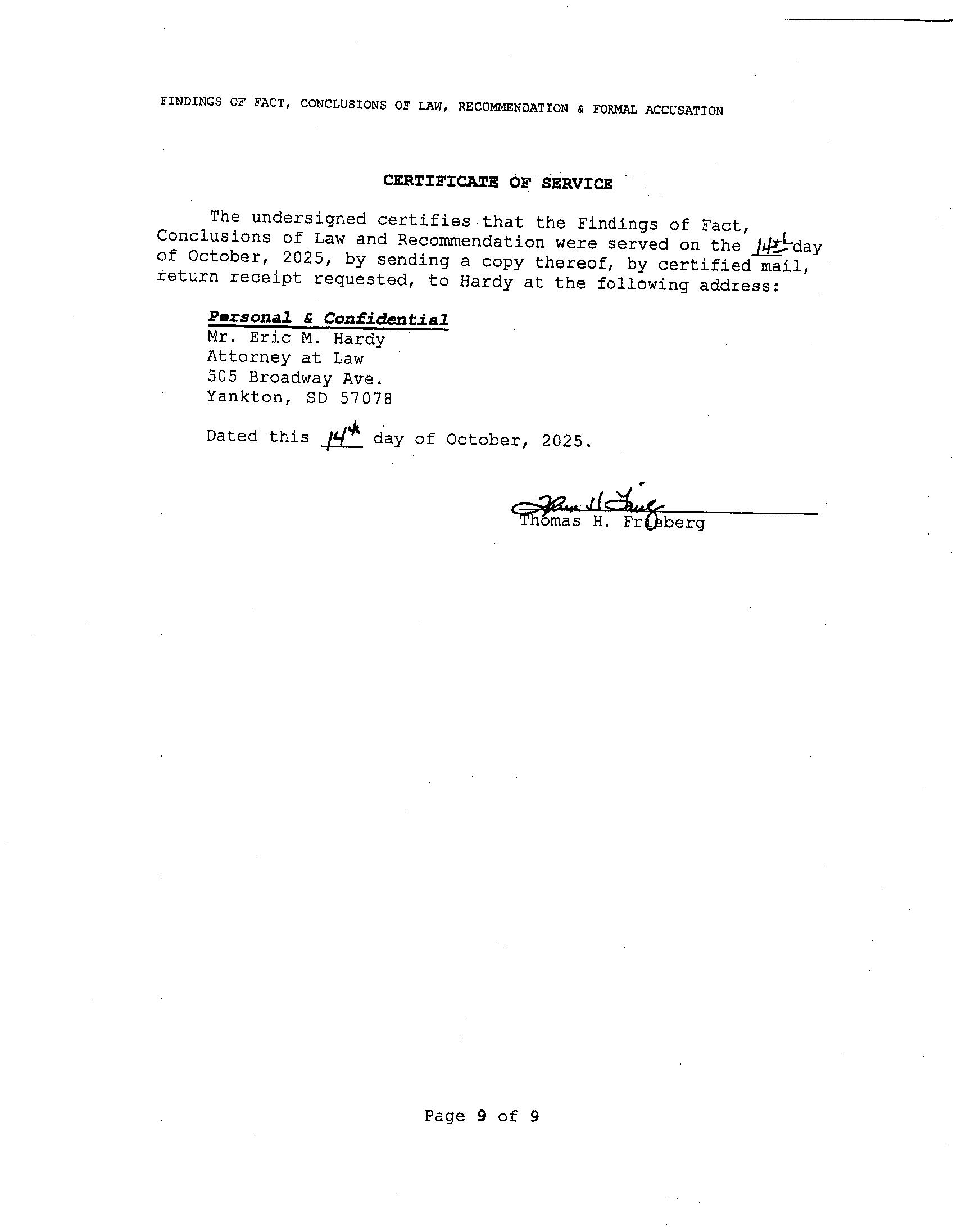 Nathan Oviatt, Attorney Goodsell + Oviatt Law Firm PO Box 9249 Rapid City, SD 57709 or email at Lori@goodselloviatt.com or Nate@goodselloviatt.com