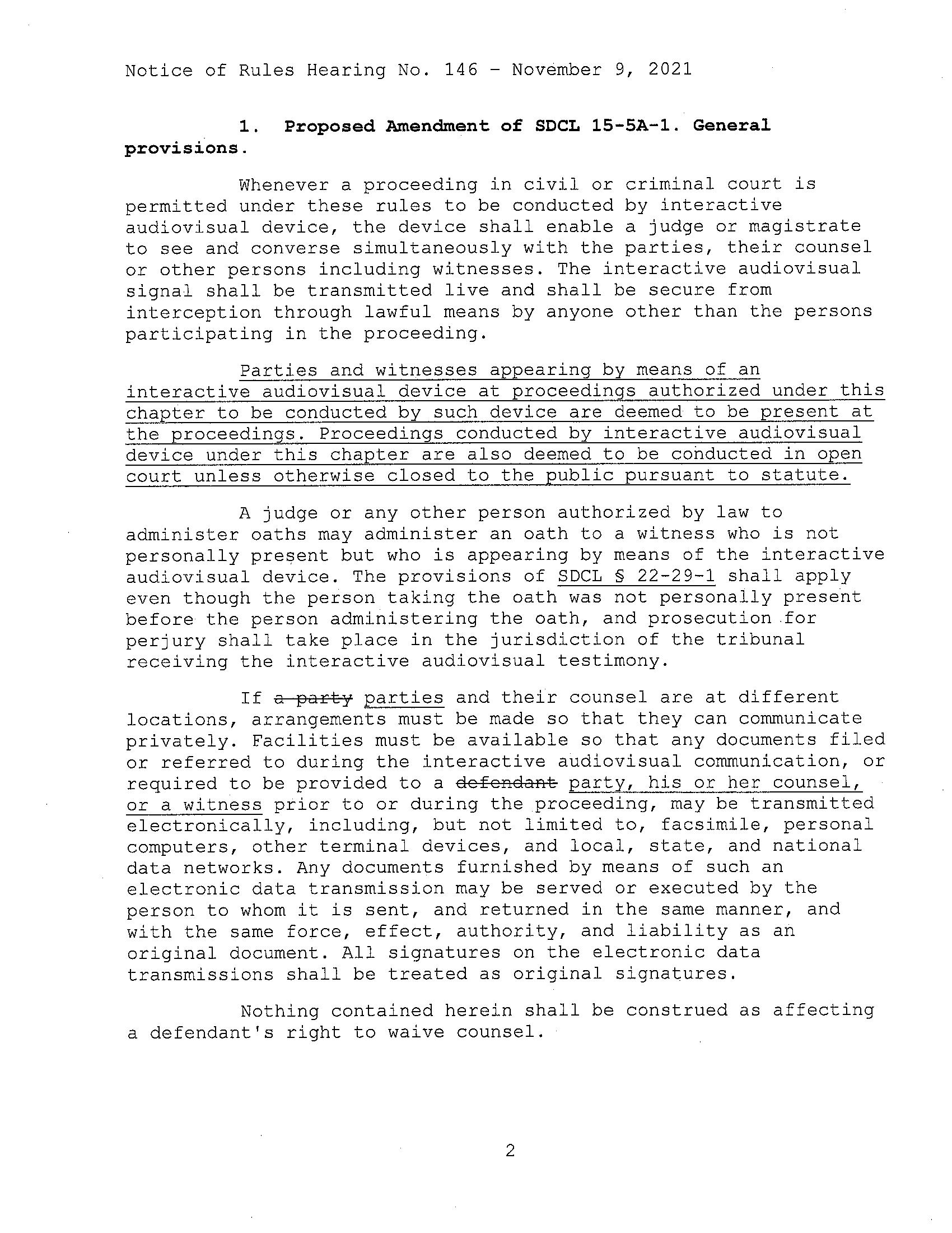 1. Proposed Amendment of SDCL 15-SA-1. General provisions.