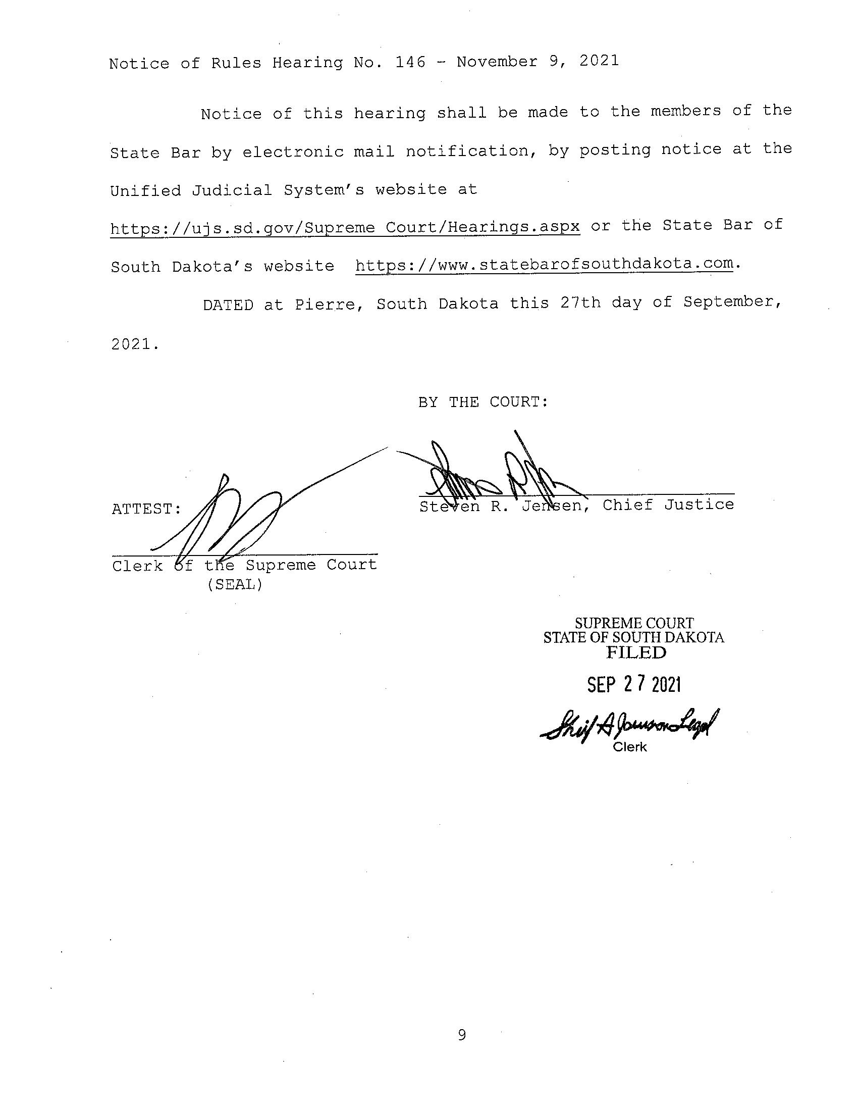 Notice of Special Rules Hearing No. 146