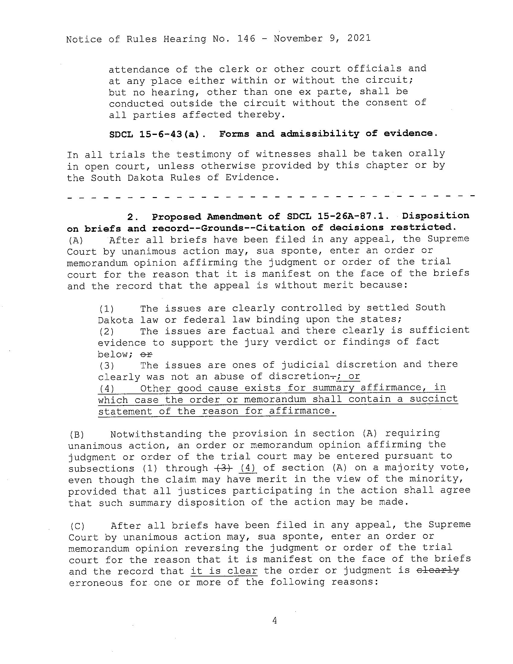 2. Proposed Amendment of SDCL 15-26A-87.1. Disposition on briefs and record--Grounds--Citation of decisions restricted.