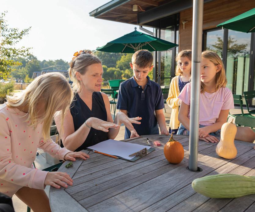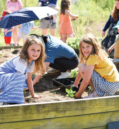 Throughout the school year, the Bryan Innovation Lab hosts Nature Play School, a weekly social time for children to explore and be creative in nature. Geared toward children in preschool through grade 5, Nature Play School is open to Steward and nonSteward families and is led by Bryan Innovation Lab Specialist Megan Young. Recent activities included creating a papier-mâché bird’s nest, building a giant spider web, and planting flowers and vegetables in the community garden.