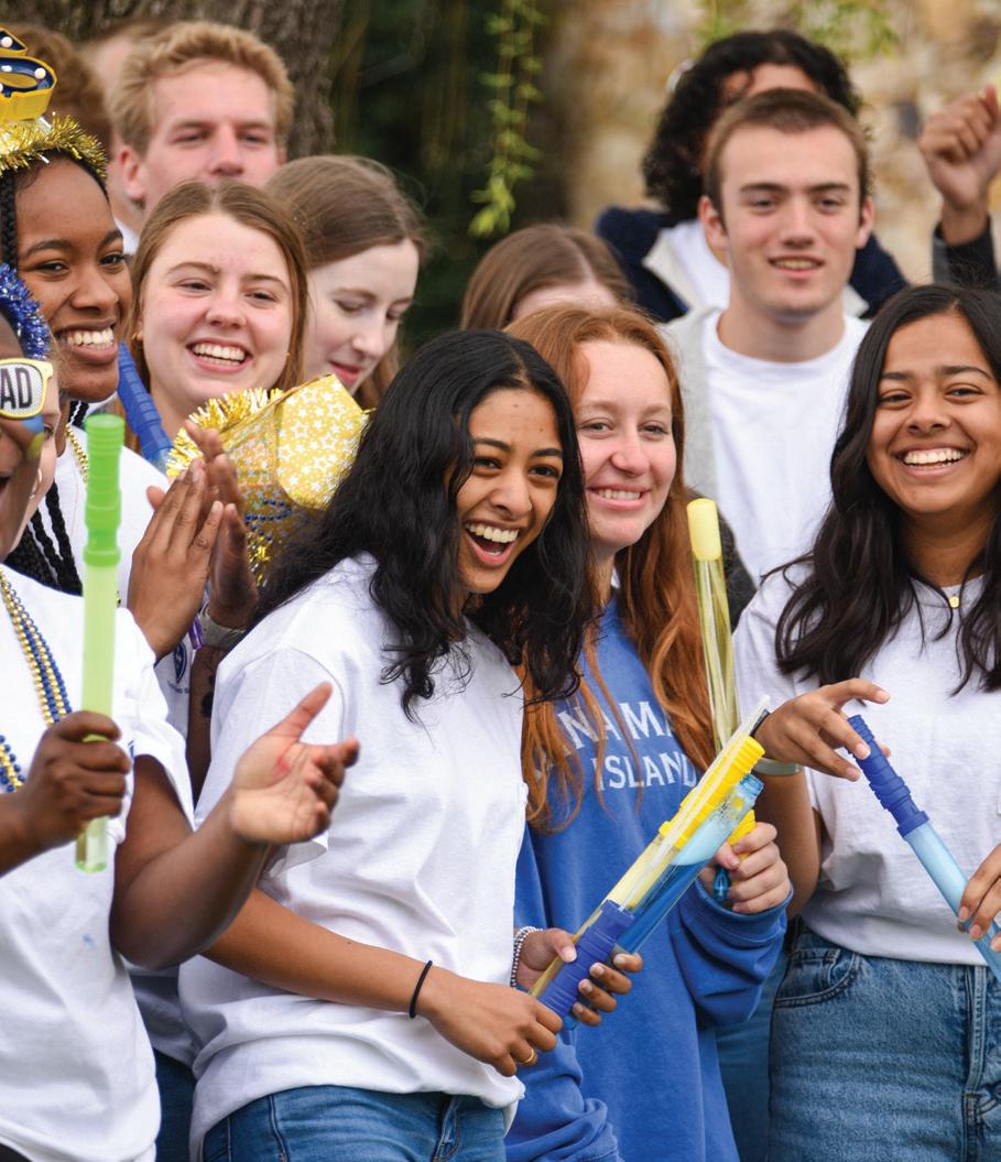 “There have always been ways for students to get involved, but the Spirit Squad is a less formal, more exciting platform for our student leaders,” said Carley Hamilton, committee co-chair and mother of Richmond ’30 and Phillip ’32. “We brought back the Blue/Gold Challenge this year, after a few quiet years during COVID, and the students have been so enthusiastic and determined to represent their colors. They’ve loved rallying enthusiasm at events and then watching their point totals tick up on our real-time tracker. Watching their glow brightens all of our glow.”