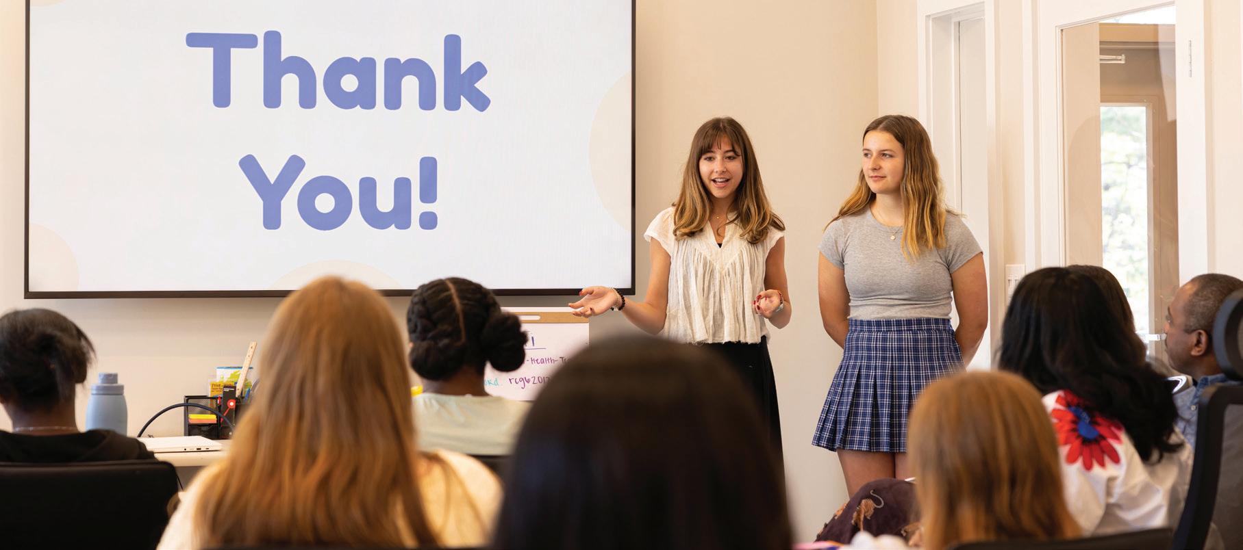 In the 2022-23 school year, the students worked with Gather co-working spaces in the fall and Recognizing Children’s Gifts Behavioral Health Network (RCG) in the spring semester. Tarsha and Sherman Adkins, parents of Jordyn ’25 and Gabby ’31, run RCG, which promotes and enhances the development of individuals with special needs.