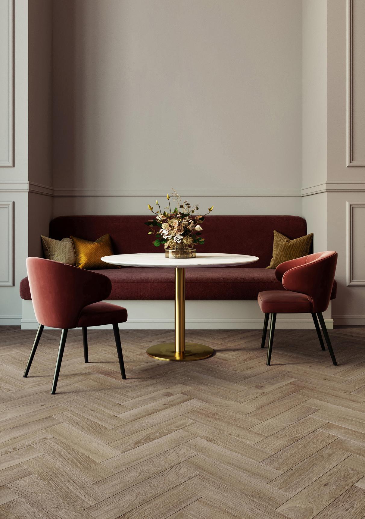 Each Elegance Royale Plank has been skilfully created using a new super matt technology (Gra-Matt™Ultra) that makes the floor visually closer to natural wood, unlike many other glossy LVT products. Each design accurately mimics the texture of natural timber while incorporating multitonal variance to give your herringbone floor realistic character and depth.