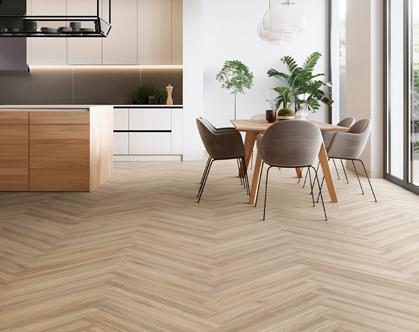 Each Elegance Royale Plank has been skilfully created using a new super matt technology (Gra-Matt™Ultra) that makes the floor visually closer to natural wood, unlike many other glossy LVT products. Each design accurately mimics the texture of natural timber while incorporating multitonal variance to give your herringbone floor realistic character and depth.