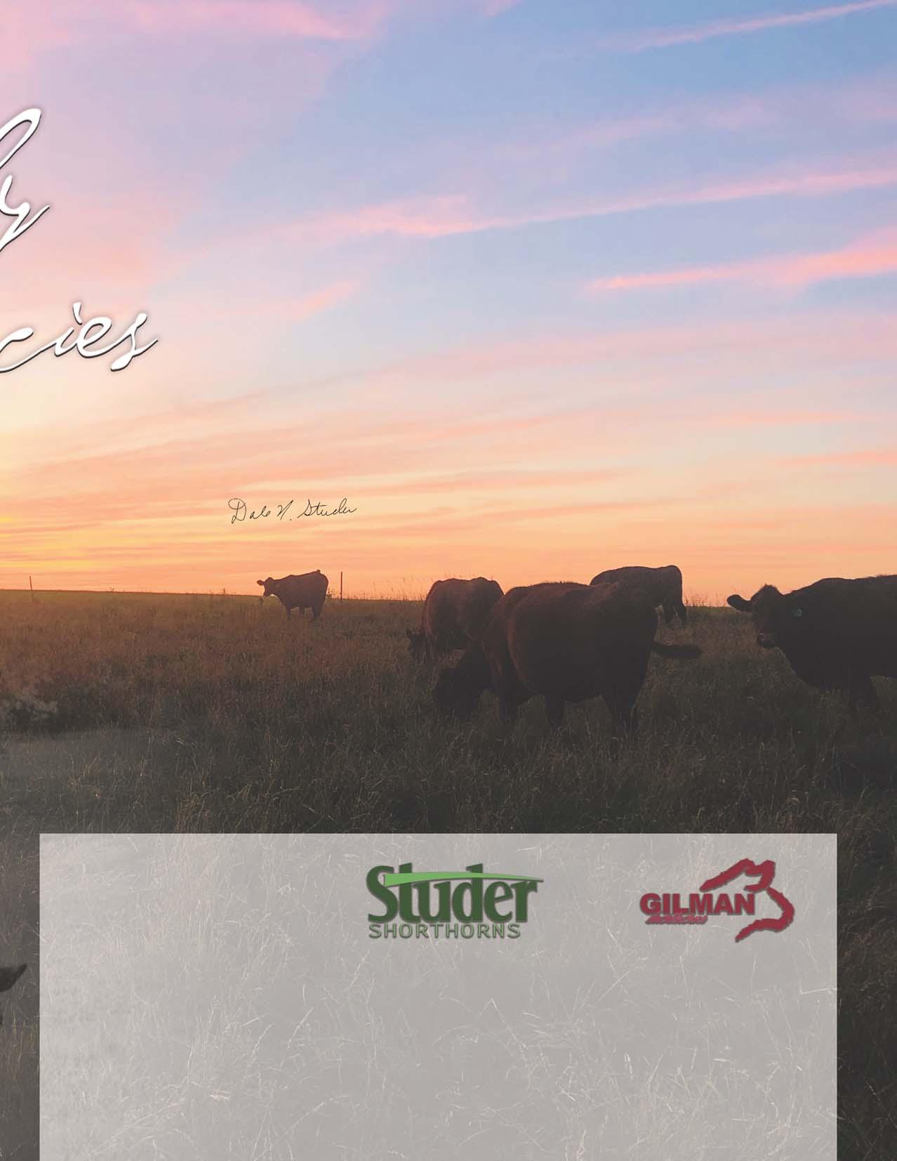 The Gilman Family | Cary, 515.360.6006 Ethan, www.gilmanshorthorns.com515.360.1445 Bert Moore, 701.541.5035 Dale: 641.344.8035 | Nate: StuderShorthorns@yahoo.com641.344.8487www.studershorthorns.com Follow onFollow on POLLEDMAPLETONSHORTHORN SALE OCTOBER 8, 2022 at the WCC Cow Palace, Anita, IA 1% of Family Legacies gross sales will go to the 2023 Shorthorn Junior Nationals in Des Moines, Iowa - donated by Studer Shorthorns, Gilman Shorthorns and Mapleton Polled Shorthorn!