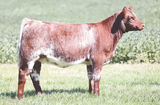 BRED HEIFERS PAGE 15 Brock was blessed to show this heifer of Sarah’s and he was just looking through his memories on Snapcaht this past week and said I sure miss that heifer! He showed her during the Winter and was one of the first heifers he got to fit legs by himself on. This beautiful roan bred heifer is going to make a great cow! Ultrasound safe to Deerhorn Rifleman and due the first week of April. The best time to buy a bull is when you don’t need one—just ask Anita—Dale likes to bull shop but not shop for anything else! Consigned by Sarah Studer SASKVALLEY WHOLESALE 114WSASKVALLEY YESTERDAY 116Y SASKVALLEY ROSE 43W BFS MASTER PRINCEBFS ELSIE’S JADE MP 932 BFS ELSIE’S JADE CR 539 DSF ELSIE’S JADE 13J 4321493 01.28.2021 Polled/ Roan 13J 100% Shorthorn Bred Heifer43lot 150.3 48 74 29 53 8 0 12 0.28 -0.08 -0.01 50.03 133.67 51.86 CED BW WW YW MK TM CEM YG CW REA FT MB $CEZ $BMI $F Another Party Gal that is a full sister to one of our all time favorites! Dave bought her Mom in one of our sales a few years back and none of us knew until after the gate was closed. Still producing today! Ultrasound safe to JSF Foreplay the first week of February. Consigned by Studer Shorthorns SASKVALLEY ULTRA 12JSTUDER’S DISTINCT 67D ET SASKVALLEY MYRTLE 83N JAKE’S PROUD JAZZ 266LDF PARTY GAL 33X ET DSF PARTY GAL 34M DSF PARTY GAL 25J 4321544 02.08.2021 Polled/ Roan 25J 100% Shorthorn Bred Heifer44lot 92.6 39 61 26 45 2 0 5 0.29 -0.07 0.04 33.51 104.78 47.21 CED BW WW YW MK TM CEM YG CW REA FT MB $CEZ $BMI $F This Party Gal female got to go out with Saskvalley Footprint and unfortunately we didn’t get too many calves out of him. This female has been a discussion as to what to do for her for a few months between Nate and Dale. Ultrasound safe to PVF Cowmaker in March. Consigned by Studer Shorthorns ACC DELTON 26DSASKVALLEY FOOTPRINT 284F SASKVALLEY DORA 326S JSF MARQUIS 127XDSF PARTY GAL 1A DF PARTY GAL 33X ET DSF PARTY GAL 41J 4321562 02.23.2021 Polled/ Red 41J 100% Shorthorn Bred Heifer45lot 81.8 56 86 21 49 4 0 11 0.63 -0.06 -0.12 23.77 119.64 53.79 CED BW WW YW MK TM CEM YG CW REA FT MB $CEZ $BMI $F lot 43 lot 44 Due approximately March 1, 2023 to AshValley Answer 0243. Another Cowboy Up heifer that could hold her own with the best of them. The fancier of the Cowboy Up females offered this year, with an extremely balanced set of EPD’s. Cowboy Up x Answer is going to work as we have a few calves on the ground bred this exact way. The Gussie’s Gem cow family came from Tom & Sandy Johnson in Ackley, Iowa. Consigned by Gilman Shorthorns LEVELDALE BOARDWALK 530CLEVELDALE COWBOY UP 820F LEVELDALE CASSANDRA 019X GILMAN’S PRAIRIE FIRE 580GILMAN’S GUSSIE’S GEM 62F GILMAN’S GUSSIE’S GEM 552 GILMAN’S GUSSIES GEM 58J 4317683 03.02.2021 Polled/ Red 58J 99.0% Shorthorn Bred Heifer46lot 101.5 53 83 24 51 6 0 3 0.35 -0.09 0.21 31.23 131.22 56.82 CED BW WW YW MK TM CEM YG CW REA FT MB $CEZ $BMI $F lot 46 PVF Cowmaker, service sire to Lot 45
