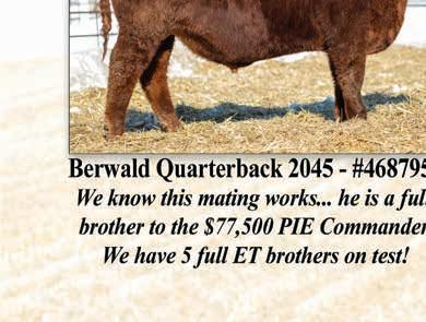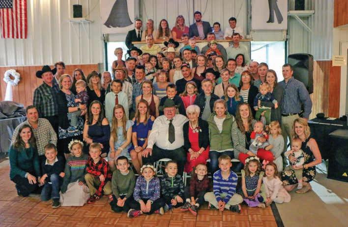 above Frank and Frosty Schiefelbein had 9 sons, 32 grandchildren, and 32 great-grandchildren.Frank III and Danny manage AI and embryo transfer for the herd, focusing on balance. Cattle are divided into five groups of about 200 females and CIDRs are used to time calving for mid-January through mid-March. One group of 250 females is implanted with embryos. “If a cow needs improvement in marbling or weaning weights, an individualized mating is selected for that cow,” Tim explained. “They have an Excel spreadsheet of AI sires that help them identify which sires will result in better calves.”