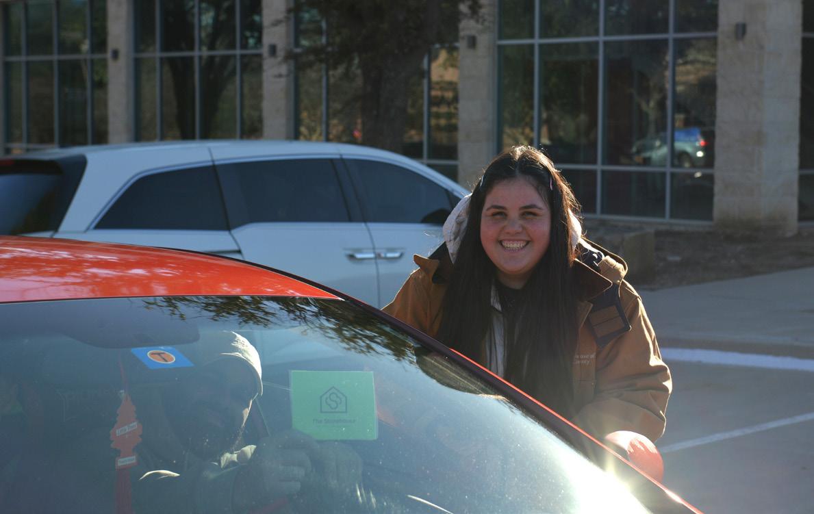 Vanessa (far right) volunteers at the Thanksgiving food distribution in November 2019. She saw snow for the first time while volunteering with her newfound community at The Storehouse.