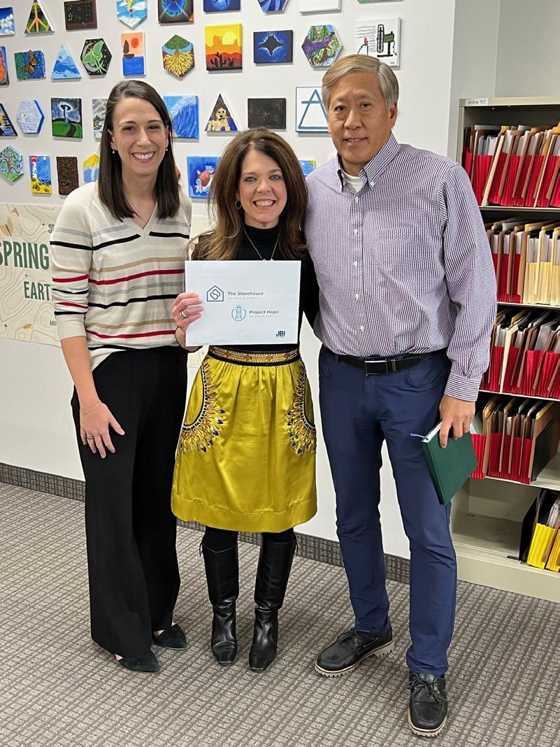and Candace Winslow, CEO of The Storehouse Community Center receiving JBI’s generous gift in December 2023 from Tom Juhn, President/CEO of JBI Partners, Inc.