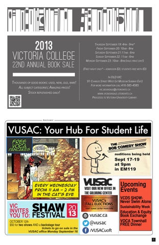 2013 VICTORIA COLLEGE 22nd Annual BOOK SALE Thousands of good books: used, new, old, rare! All subject categories; Amazing prices! Stock replenished daily!