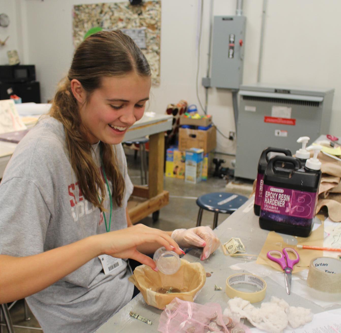 Sarah Hickman (12) pours resin into a mold