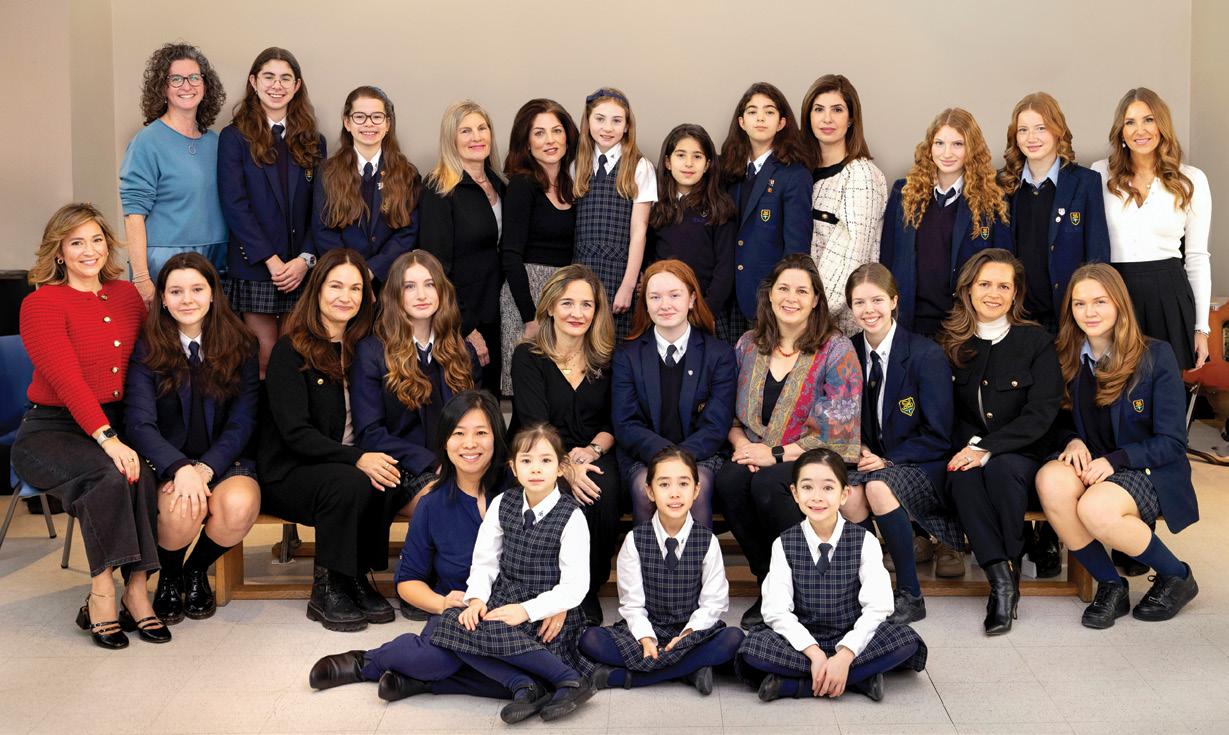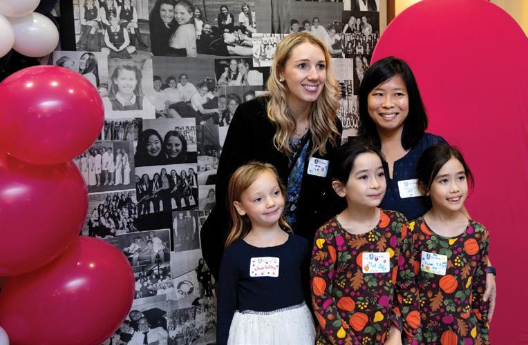 JANET FAITH ’86 , CHARLOTTE FELTHAM ’25, ANNE HEENAN ’88 , SOPHIE HUNT ’25, ERIKA FLORES LUDWICK ’88 , AND MYLIE LUDWICK ’24 SEATED (L TO R) MANNA CHAN ’01 , HEIDI TITLEY ’34, NAOMI TITLEY ’33, AND MEILI TITLEY ’31 ABSENT ARABELLA DECKER ’87 , MATHILDA MICHEL-DECKER ’26, JULIA (CARBONE) GOLD ’97 AND HANNAH GOLD ’28.
