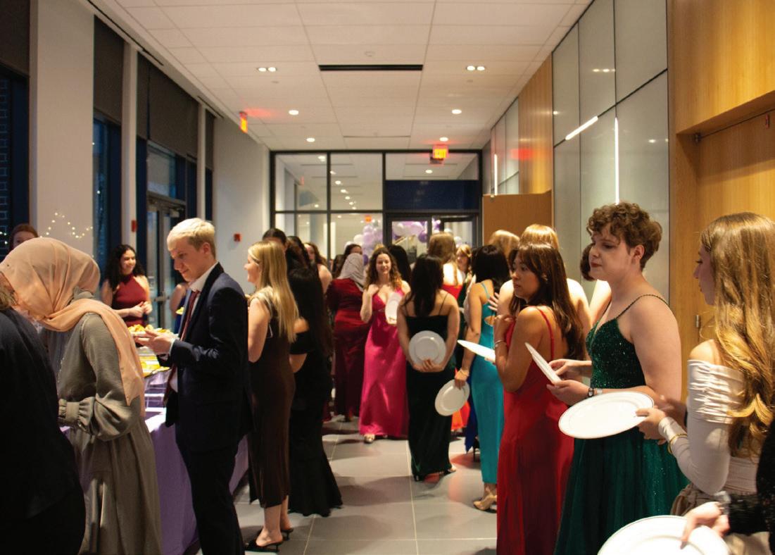 tables and the dance floor. Women’s Gala represents a year-long collaboration between SWE, SWIB, and SWiCS efforts to gauge attendance interest and begin the technical planning for event budgeting, catering, and alumni panel profiling to make the night a celebration of women’s leadership. Previous organization collaboration throughout the semester—the SWiCS and SWE Slumber Party Event in December—contributed to the gala’s success. “We wanted to bring all three orgs together and see if there was an interest to combine across disciplines,” says Halton, as club attendance continues to resurge from COVID years. “We had a high turnout for that event, and we felt ready to push forward and spend all the money to make this gala possible.”