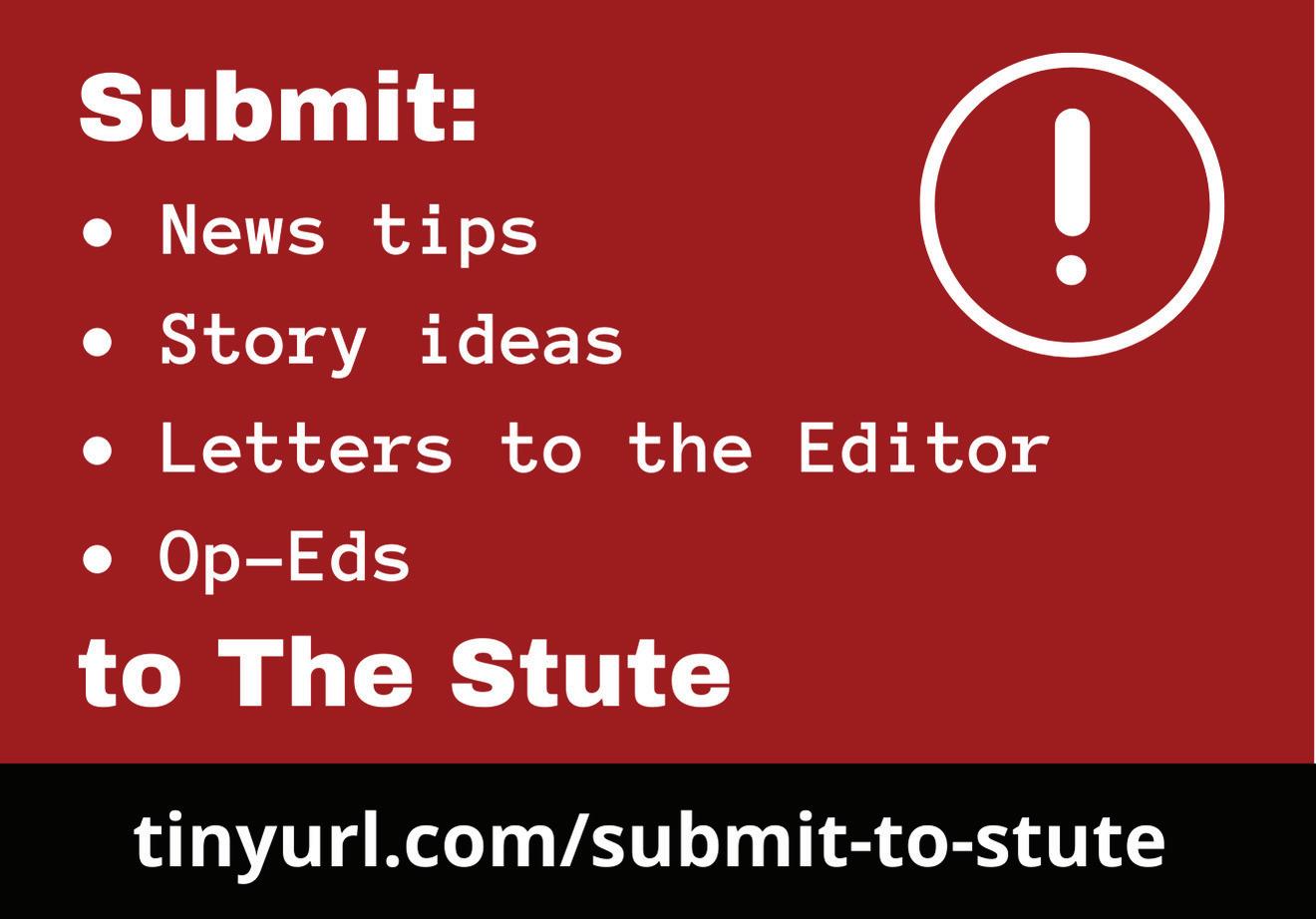 The Editorial Board reserves the right to choose whether or not to publish a submitted Op-Ed based on a majority rule vote, and additionally reserves the right to edit Op-Eds for clarity or request authors to revise. Provided that the author approves the final version, The Stute reserves the right to edit Op-Eds according to our copy editing procedures, defined in our policies.