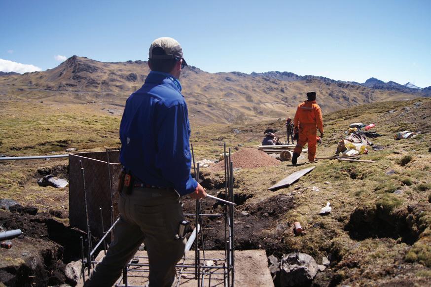the community to identify local needs, the students thought of five possible solutions, including aqueducts and retention lagoons, before ultimately settling on a spring remediation system designed to increase water flow during the dry season. Students applied through a competitive process to join the travel team, with selection based on their commitment to the chapter, success, and fundraising. “We want to make sure we’re going there with a defined goal and that the work we plan to do is truly beneficial to the community,” Franznick said. Once on site, the team partnered with local contractors, community members, and leaders to execute their plan. The work was not without challenges, however, as rainy, cold weather slowed construction, and language barriers often made even simple communication difficult, since the community of Peru primarily speaks Quechua. “Very simple ideas took a long time to communicate due to the language barrier,” Franznick recalled. But the payoff was immediate. By the end of the trip, the system raised the spring’s flow by 140% during the dry season, directly improving both agriculture and alpaca herding. For the Stevens team, it was a