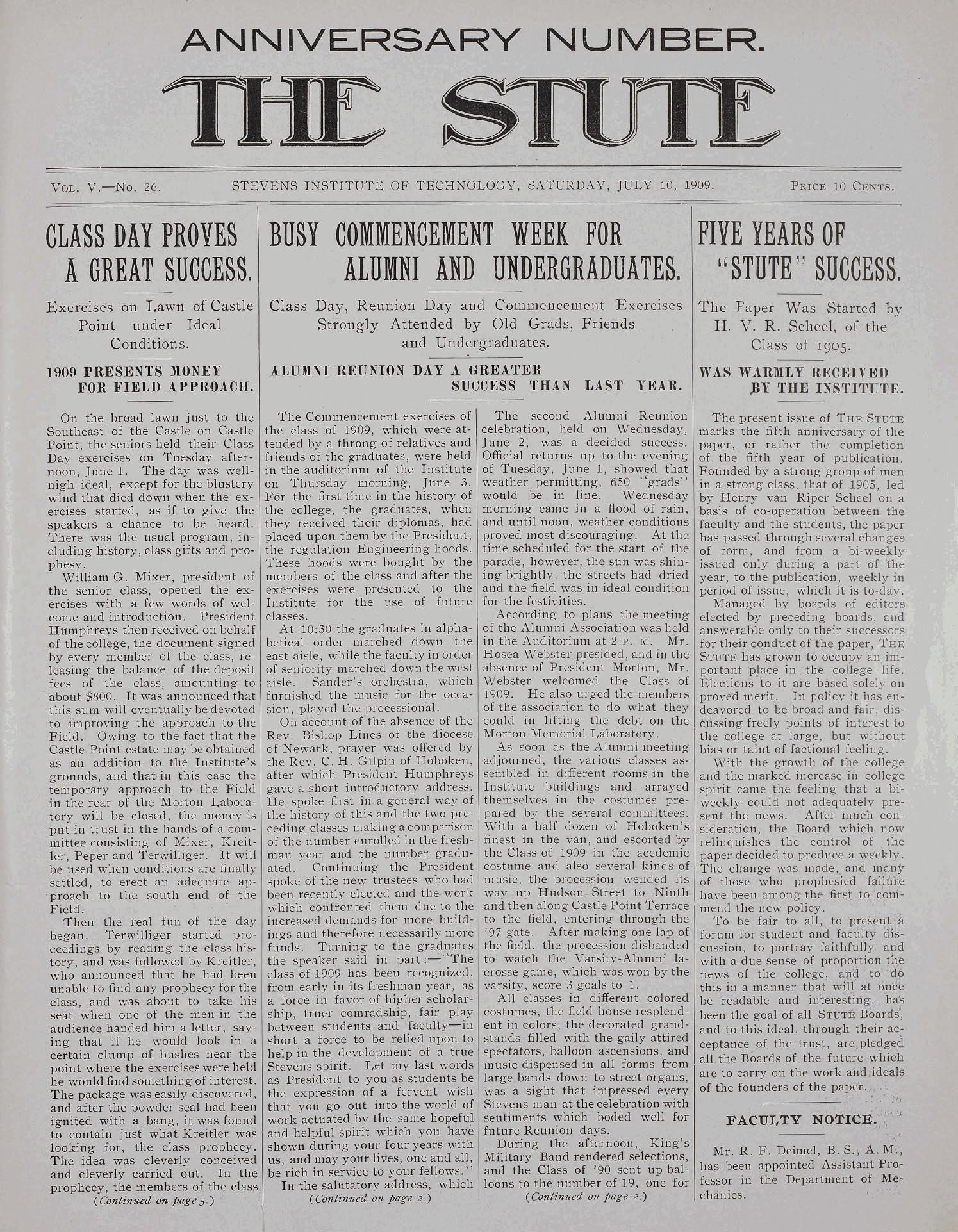 Voi,. V -No. 26 STEVENS INSTITUTE OF TECHNOLOGY, SATURD-VY, JULY 10, 1909. PRICK10 CENTS.
