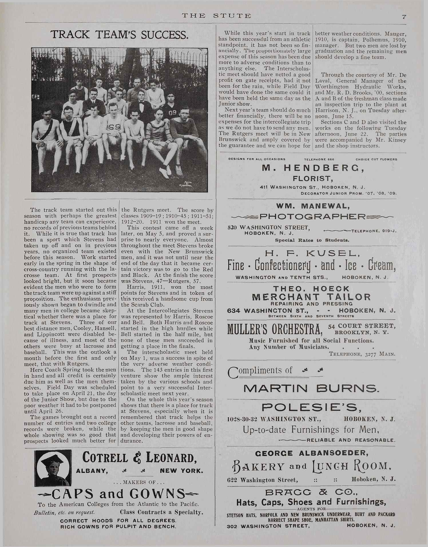The tmk team slarkd wt this the Rntm meel The scwe by -0 wttk perhaps the gre%t€ c~~~ I90~-19,19104S lgll-$1 bandhap my tat11 -13 experie&xe 1912-20 1911 wen the mmt a0 -~of~~no,~t~m~hb~nd Thu cent& -me 0% a met tt Whde >t IS true that track hm Iak, May 5. nwl pmwd a 8Wkn a sport whwh SEewxm hsd vrxeeto nwly ewxrone Almw trhm mp etl and a tn mom thmushomt the meet Smim broke am no wmtmed team emstad =vet3 w$th the New Mrnmw8ck Lfore th~swm work started mea, end zt mm net nmtjl new the early in the spring the #haw of end of the day thtt rt hame wrnrw wmutw rum%wwzth the la- tam v~u~r~ w= to m m the Red m- team At first pmgxcte ad Black At the fimah the mm b!dbr~zht,bat lt awn hme rnSlevem. 47-Eutm, 37 ewdent the men who were to farm Ham, $911, %en thc mt th~trsckt~rnmup~tma~iff wlnts far Stevevs and XI token mi pwgm~t~enThe enthmw wv tbw 5wm-d a baaaxme wp icm bmly 5hown &gat? todw~ndlemd thehmb Club many -a h wllc~=kame dsep At the I~Eercollem~t~Stevens hcel whether thew was 6 plsw far -sep-ntd by Xarm, Rak at Stevens Three of our and Bell Moth Earn8 and Rww ht &mue mei1,Cd~y,~~n8ell,mrted III the hkh hwdla whle sad Ltpptnwtt %+ered=bIcd be Bell emted the blf mdc bat at illmem, %admwt ~f thc none of these mcm su-d&l tn othm wm busy at la~wmand gettmg a plm zn the 6n&I% baseha Thu was the outlwik a The tt~temholmtte meet held manth before the 6-t md mnlr am Me? I, ma s8etem in spttc of met thul With Rut- the vcrv ndveme weather mnd! H& CWC~SPCIW twk t~~emet~trms be 14s entries xu ttm fim~ m kattd sad all credat 6s ~rtz.1~1~venture %bowthe amgk %awes< due hm rx well - the mat them taken by tk wrsew mhmk and =lvm Fsld Day %vm&~ed"led ptmt to a very w~fulInter to take plm on Awl 21, the day mi~olmtwmet next yea? nt the Jmor Sh@w.hnt dm to the Oa tk whmk the year's semm pwr mather lt ksd to be wtwued dm- that ekere 188 place fw trwk wt~lAnt11 26 at Stemns, e~w~altywhe" zt m