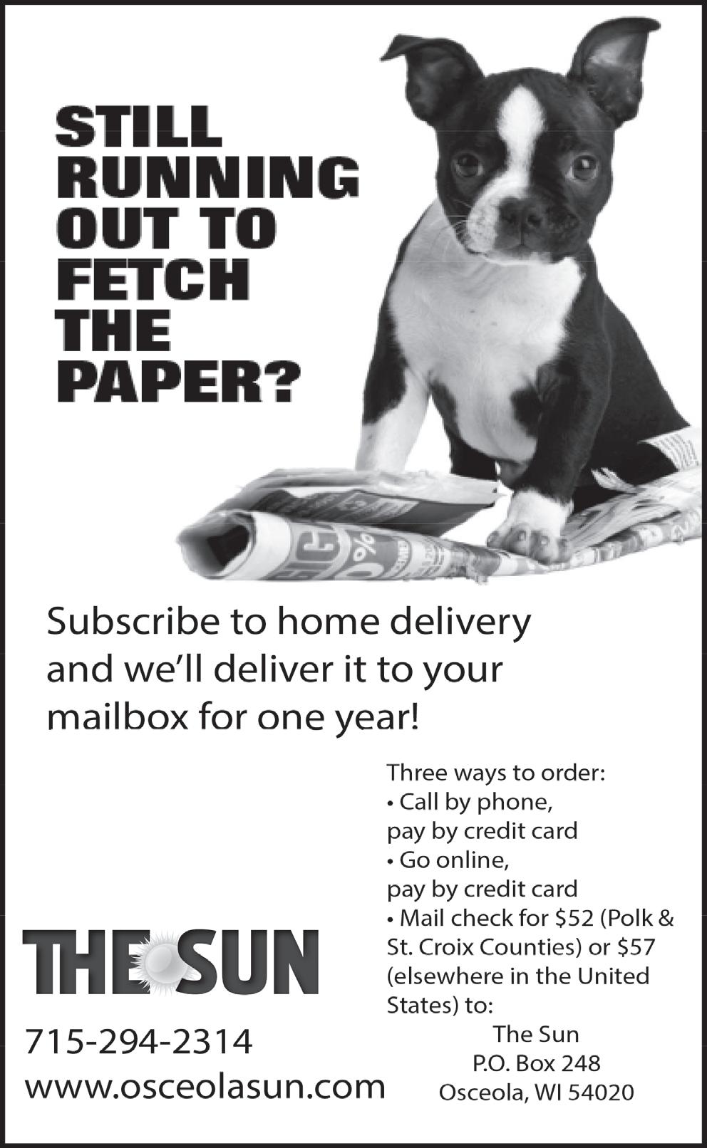 Take Off Pounds Sensibly meets every Wednesday at 8:30 a.m. at Trinity Lutheran Church, Osceola. For more information: Nancy, 715-553-3998.