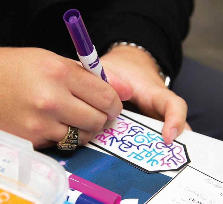 Lukas Spencer uses a purple marker to color a bookmark. This was part of a make and take event in the RSC on Oct. 16.