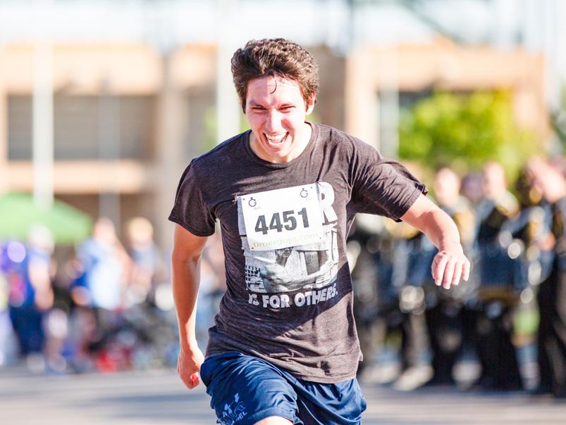 Audra Morgan hugs her 10-year-old son after the pair complete the Suspenders4Hope 5k. Morgan won third place in the race’s 40-49-year-old, female category. David Albarracin, 26, smiles as he crosses the finish line of the Suspenders4Hope 5k on Sept. 30.