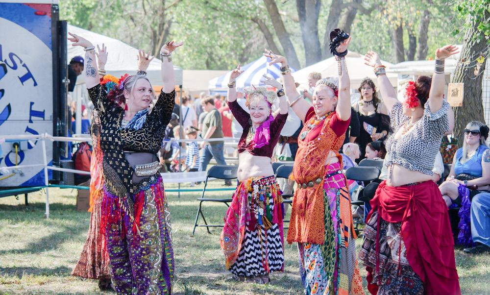 Kerry Smith dances alongside her group of belly dancers from Amira Dance Productions. On Sept. 30, a group from Amira Dance Productions joined the Great Plains Renaissance and Scottish Festival. For more photos, see page 8. | Photo by Maegan Vincent / The Sunflower