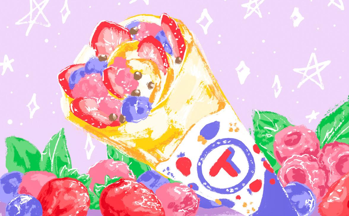 I tried the wild berries sweet crepe, which comes with strawberries, blueberries and raspberries. It also includes custard cream, whipped yogurt, chocolate pearls and granola. The crepe was delicious.