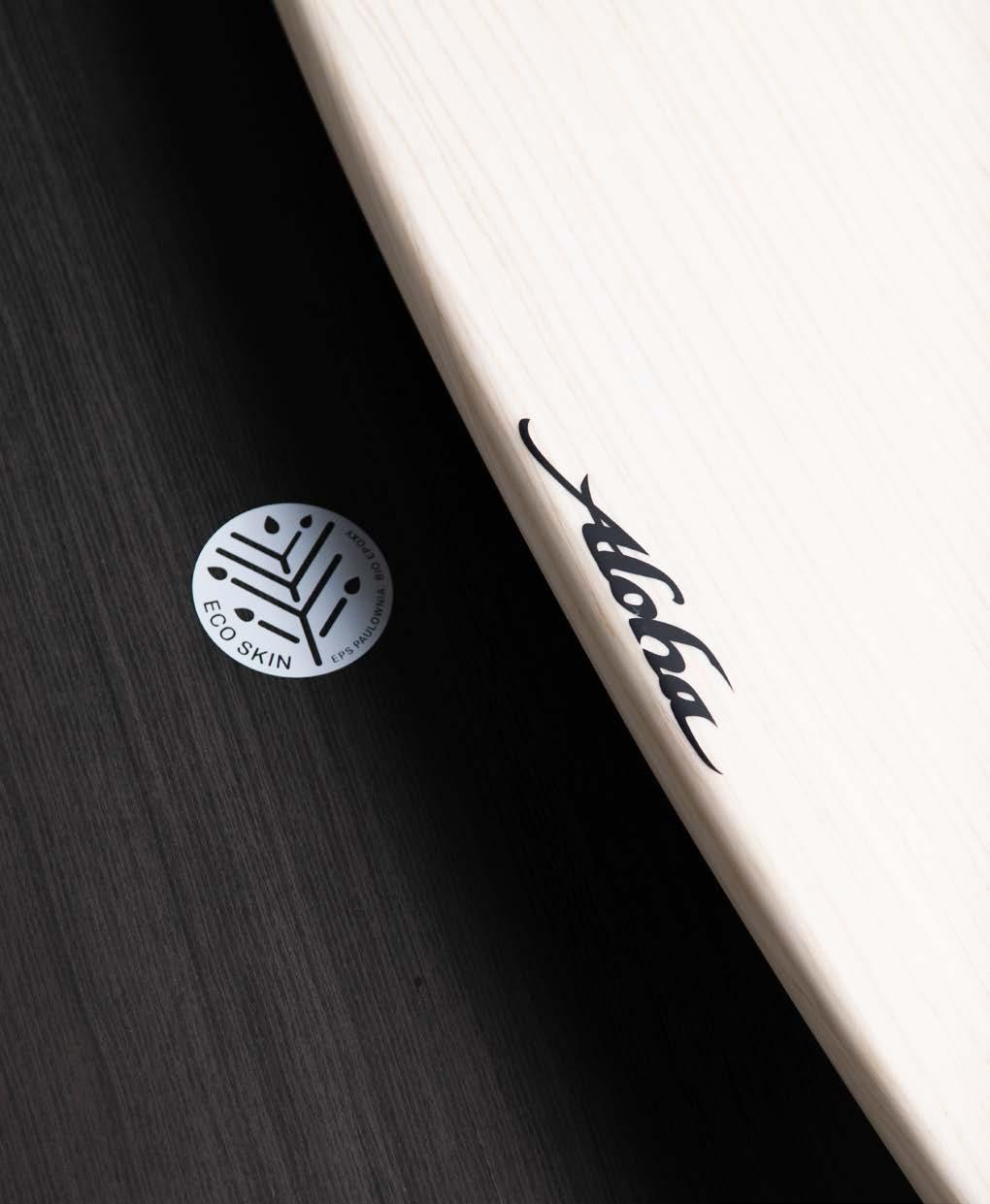 ECO SKIN IS A GAME CHANGER FOR ECO-CONSCIOUS SURFERS, USING RECYCLABLE EPS FOAM, PAULOWNIA TIMBER, AND LOW-VOC EPOXY RESIN.