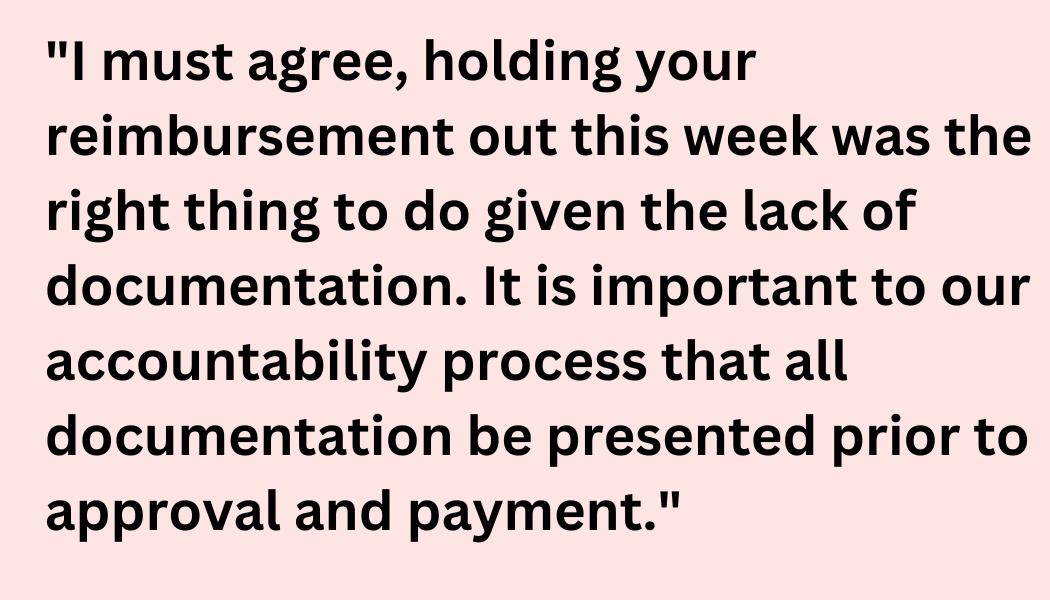 On August 9, 2011, Craig questioned why Mills requested reimbursement for checks made out to "Cash." Mills replied, "We will accept whatever you deem reimbursable."
