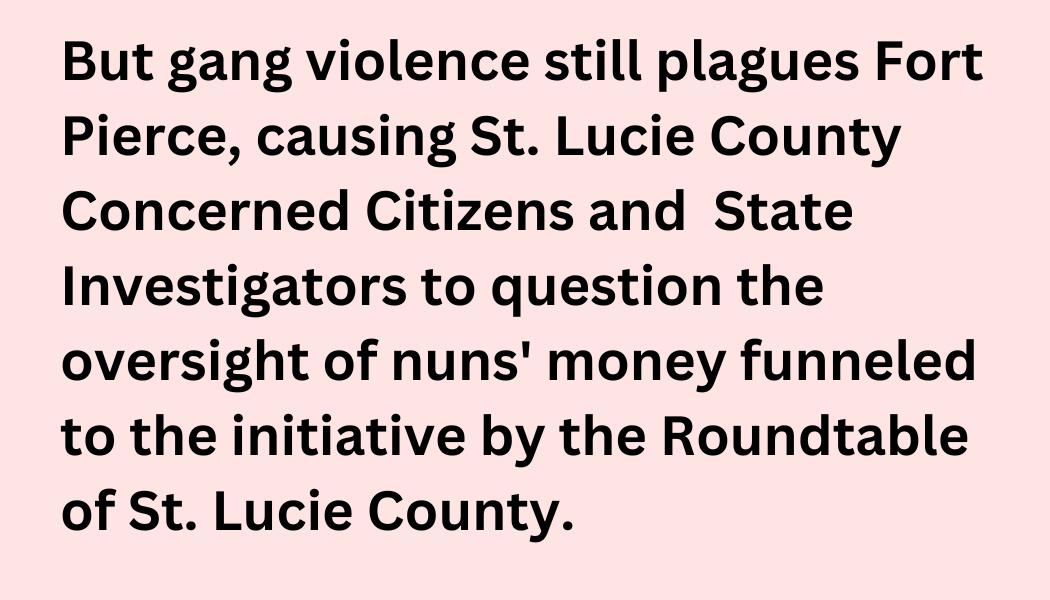 With the nuns money spent, “The Root” was never built, and “Restoring the Village” has failed to reduce gang related violence in Fort Pierce.