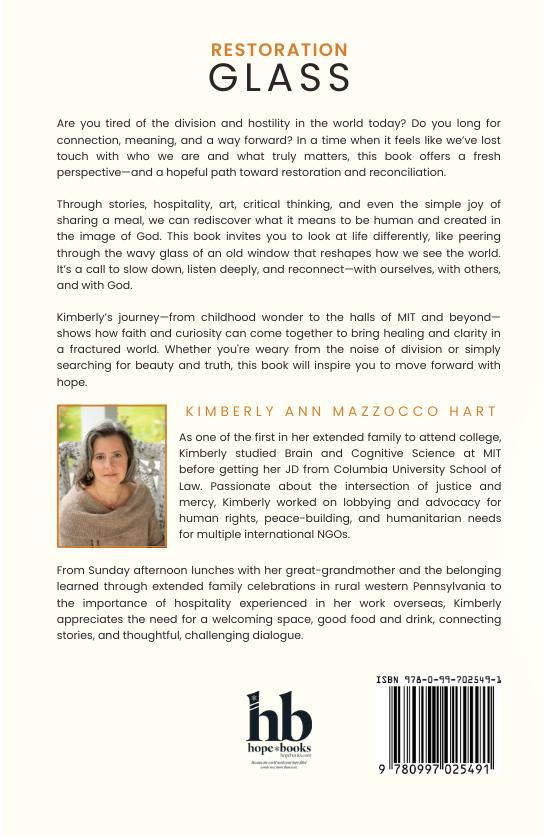 Earlier this year, Kimberly Mazzocco Hart, Zeta Mu/ MIT, debuted Restoration Glass: A Vision for Healthy Conflict; How Place, Stories, and Critical Thinking Create a Culture of Reconciliation. It is part of her work with the Fairlight Forum, a "third space" to be a place to hear and to be heard, and where groups may come to discuss complex issues in a setting that encourages vulnerability, creativity, empathy, and critical thinking.