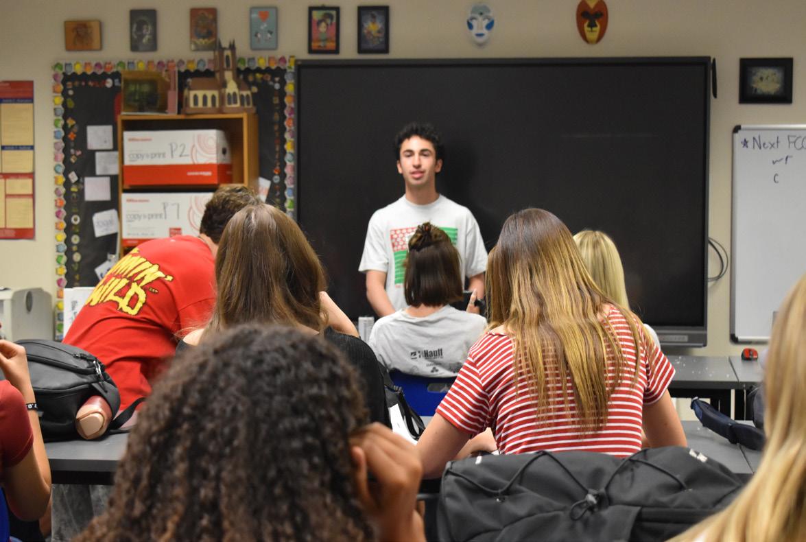 STUGO, led by student body president Preston Delly, has a group discussion while preparing for homecoming.