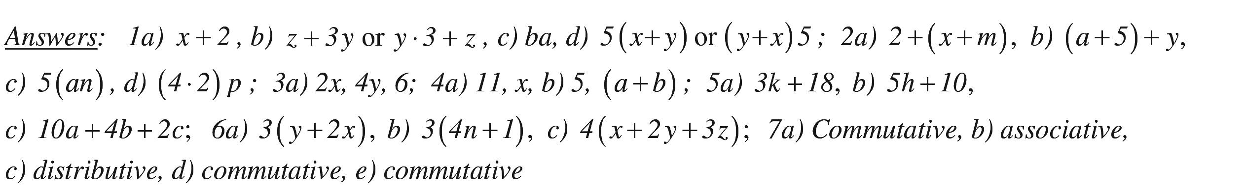 2. Changing the order of multiplication does not affect the answer. This is an example of a commutative law.