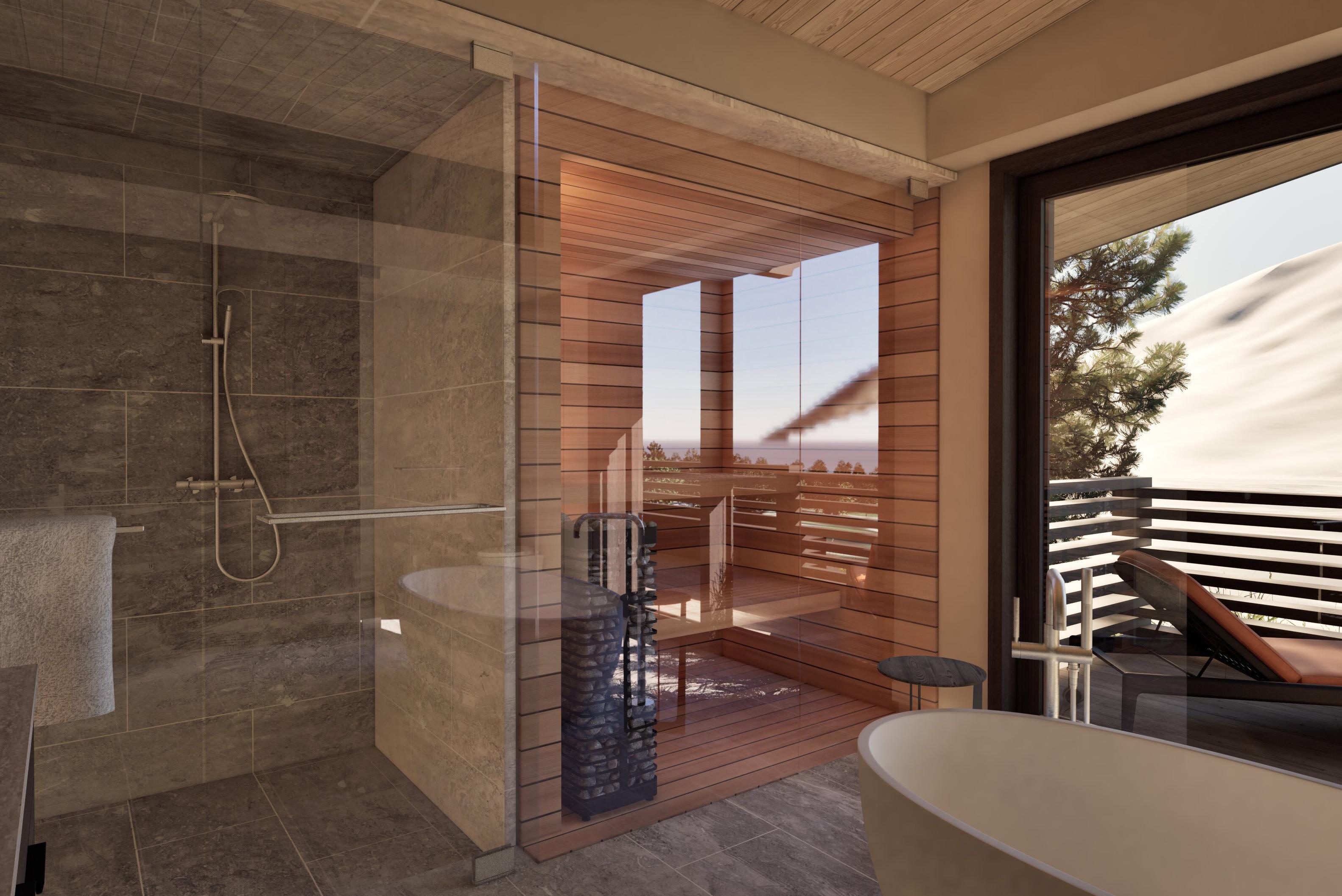 Wellness and comfort are also prioritized, with features like a built-in sauna, heated bathroom floors, and an optional a la carte wellness suite that includes a hot tub and cold plunge, available at the buyer’s request and pending builder approval.