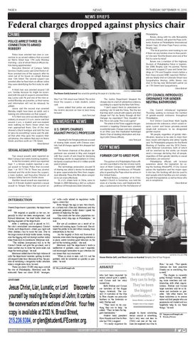 UNIVERSITY NEWS U.S. DROPS CHARGES AGAINST PHYSICS PROFESSOR Xiaoxing Xi, the Temple professor accused of sharing trade secrets with Chinese scientists, had all charges against him dropped last week. The former chairman of the physics department was arrested in May and charged with four counts of wire fraud for disclosing technology secrets to organizations in China. He faced a maximum fine of $1 million and 80 years in prison. The technology prosecutors accused Xi of sharing was about a device he developed to grow superconductive films from magnesium diboride. These thin films allow computers to run more effectively. Xi, a U.S. citizen born in China, came to Temple in 2009 following a stint as a physics professor at Pennsylvania State University.