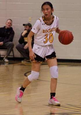 able to secure a spot on the varsity team in his first year in highschool. At first this was a shock to many returning players as they feared for their positions on the team. But as the season went on, many found that Boogie was a friend, and most importantly a very valuable asset to the team. In school he exhibits top performance, keeping straight A’s while juggling club basketball during his off seasons. “He’s always at practice working hard to prove that he’s not some little kid. He really does have amazing skills that are really impressive for someone his age,” junior boys varsity player Max Meringoff said. With the girls, a lot of fresh talent came this year, but freshman Katie Diao really made an impact. Amidst the fierce competition and immense talent that new faces brought to the court, Diao showed her potential early in the tryouts process. During her time as a freshman, she earned a spot on the MCPS 4a South First Team All-Division, earned the MoCo WBCA Newcomer of the Year award, and was one of the girl’s top point scorers with over 300 total points scored, breaking the freshman varsity scoring record. Along with these statistics, Diao was also one of the All-Met Honorable mentions in a Washington