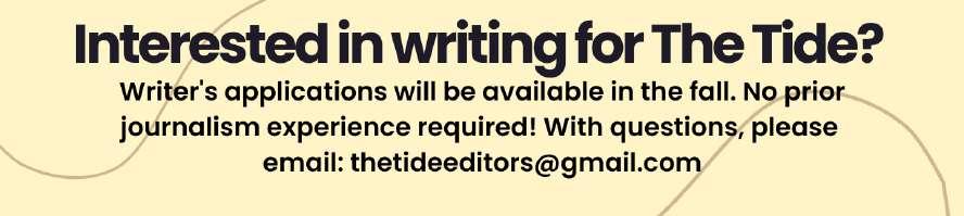 Along with Avery and Samantha, the 2022-2023 Editors-in-Chief of the Tide 8 “Give me ___,” synonym of 19-Across 9 Non-essential sentence particles 10 Bob or beehive 11 Barking sounds 12 Abundant 13 Dawn to dusk 21 “___ was saying...” 22 More kind 25 Orange segment 26 Liability’s opposite 27 Like some rude remarks 28 “hol’ up” 29 Fix the printer 30 Cacophony 31 Stomach-soothing medication 32 Qatari leader 36 Twisted, as an ankle 37 Justice Kagan of the Supreme Court 38 “Om ___,” character from the game Cut the Rope 42 Soft-spoken painter of “happy little trees” 44 Earnings 45 Sibling’s daughters 46 Take down, on the football field 47 “my dms are open” 50 Seaside sediment 51 First ed. 52 Aspiring atty.’s exam 53 Japanese cold noodle 54 Swedish furniture giant 55 Trolley car 56 New Haven Ivy League university 57 Sweetheart